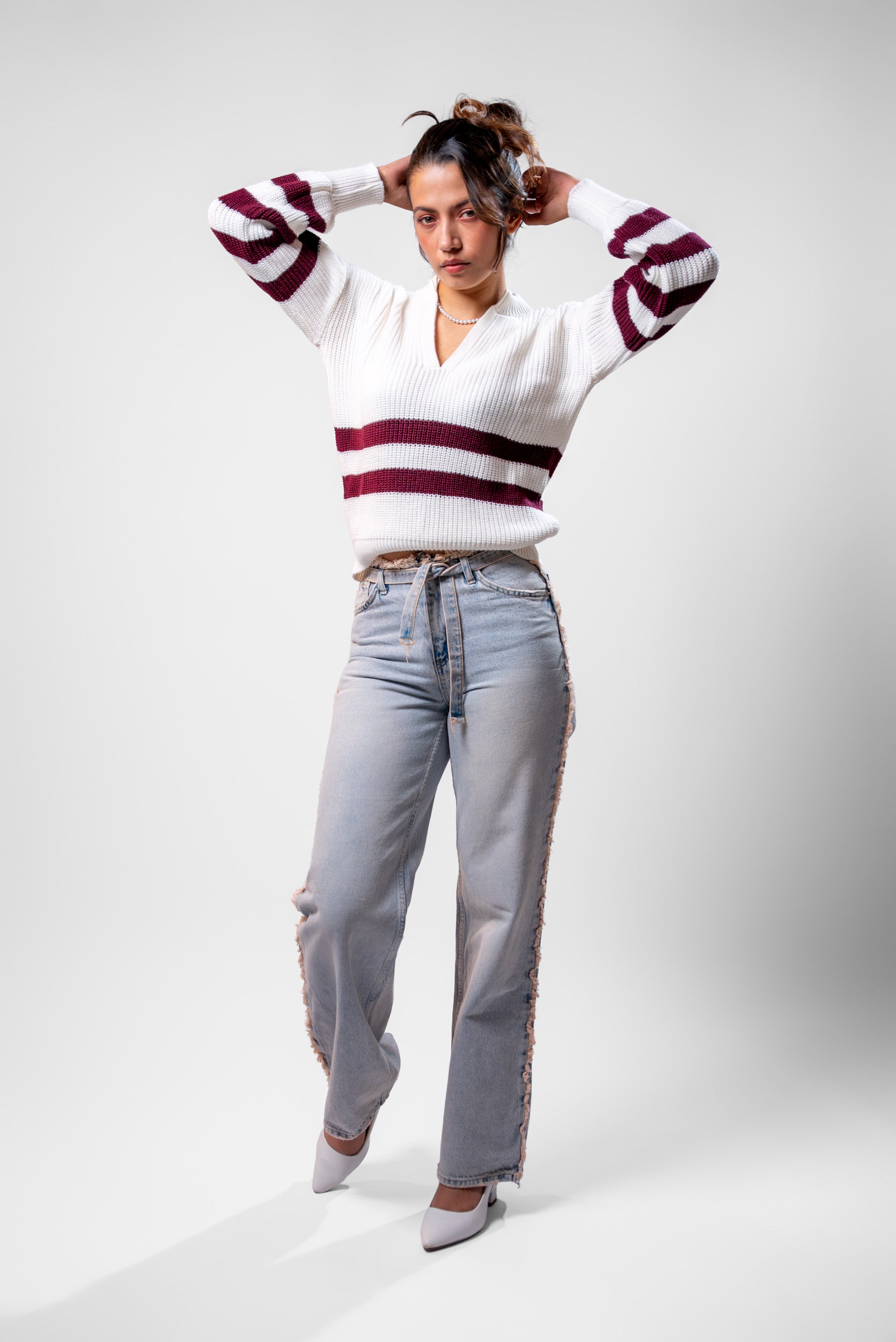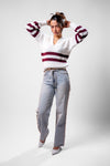 Saco Cuello V Blanco/Negro Veintidós | Elegancia Rayada
